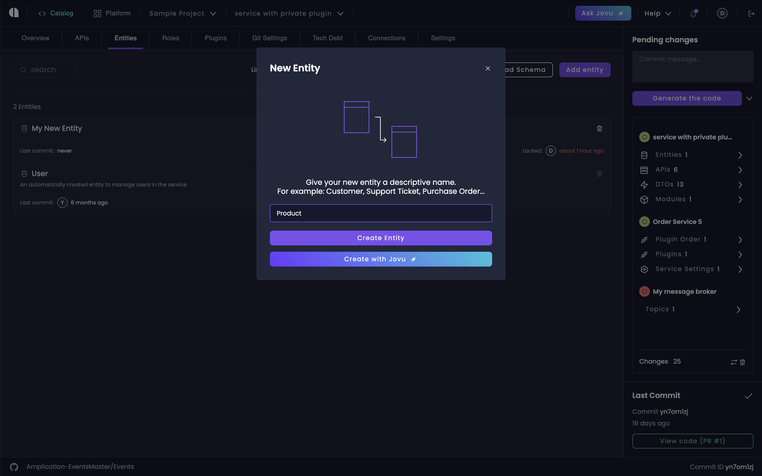 Click Create New. In the dialog that appears, enter the name of your entity and confirm by clicking Create Entity.