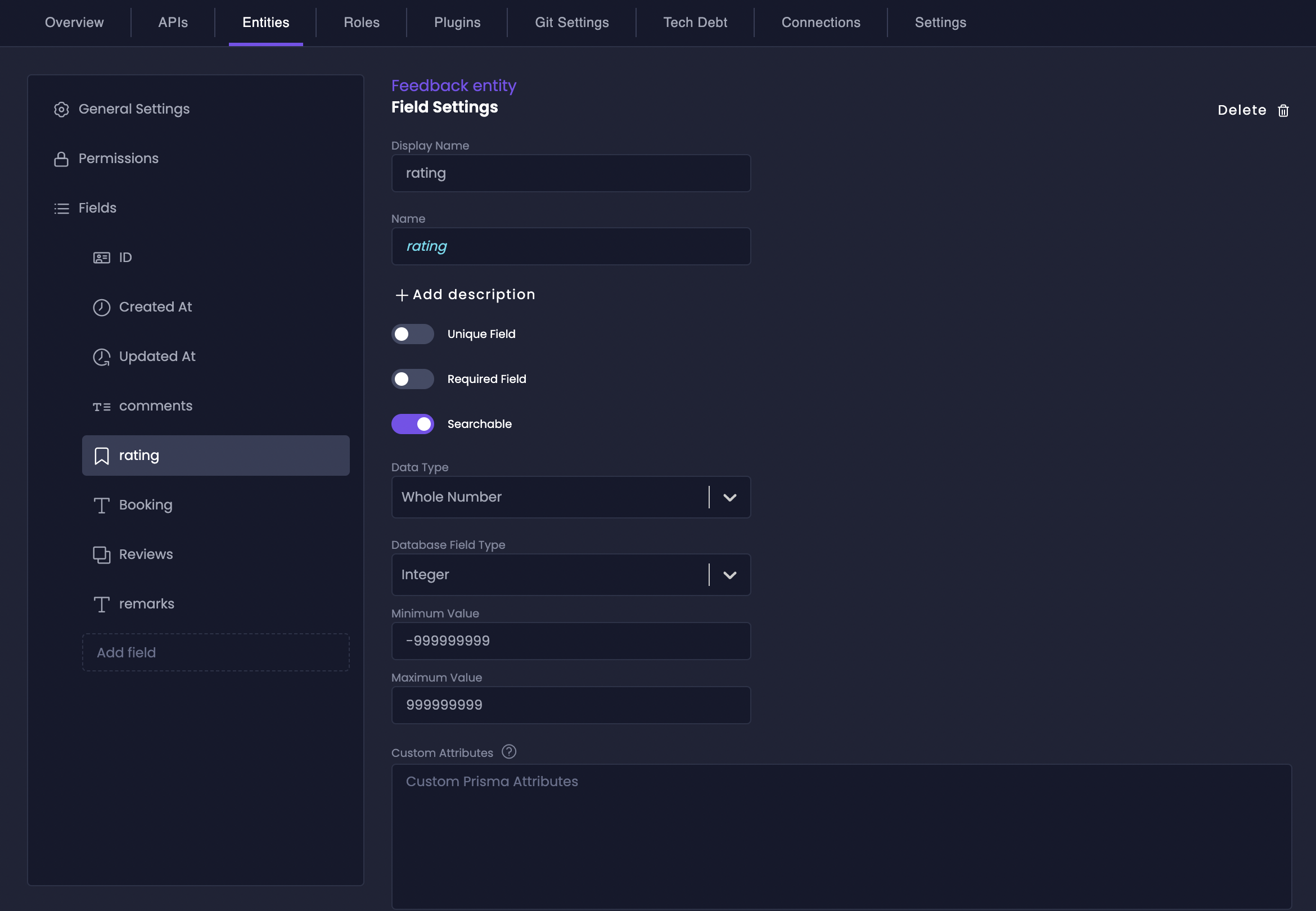 For developers who need fine-grained control over their fields, Amplication provides Custom Attributes. These attributes allow you to directly leverage Prisma’s powerful schema customization features within the Amplication UI.@) to customize individual field properties. These are accessible in the Custom Attributes text field within each field’s settings page.