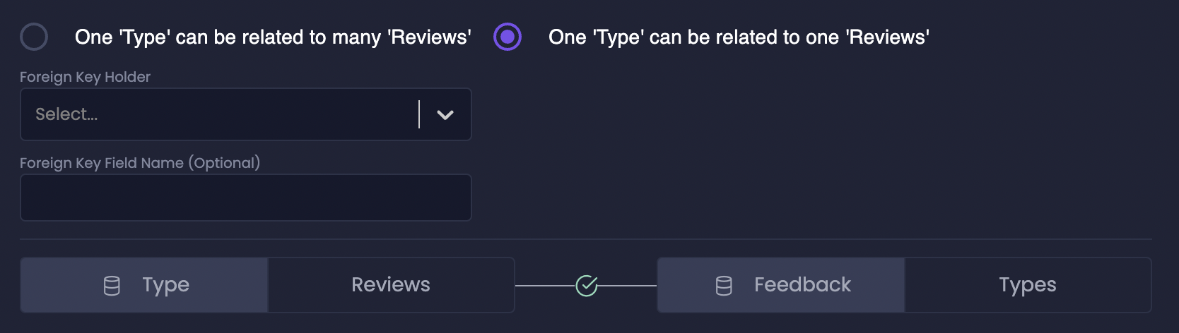 - “This side”: The current entity you are editing will hold the Foreign Key.