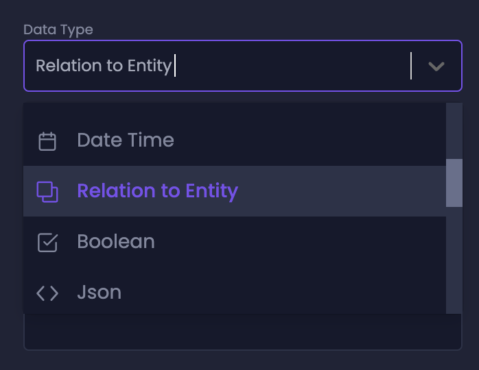 Selecting 'Relation to Entity' data type