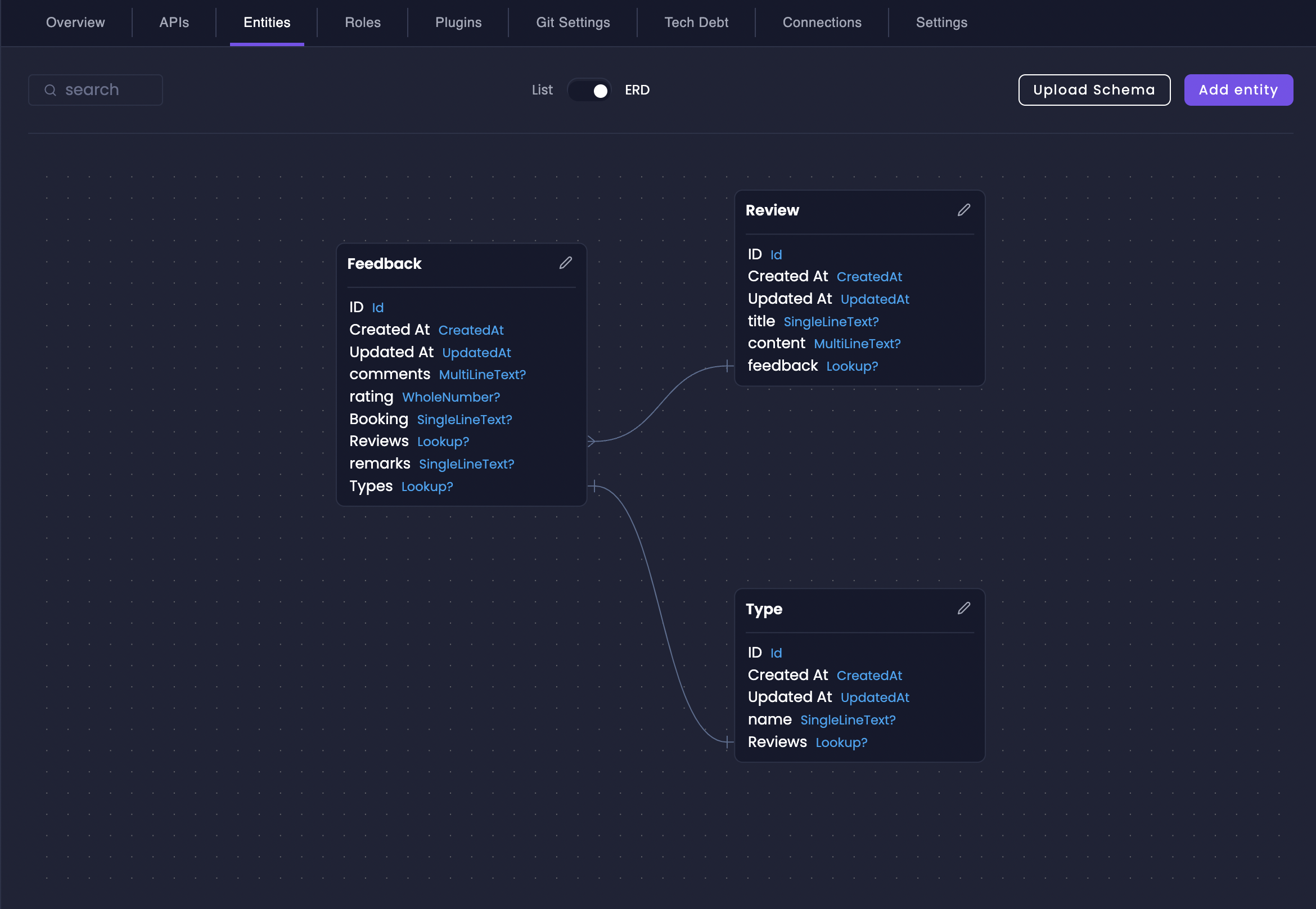 Amplication’s Entity Relationship Diagram (ERD) view becomes even more valuable when working with relationships. It provides a visual map of how your entities are connected, making it easier to understand and manage complex data models.1