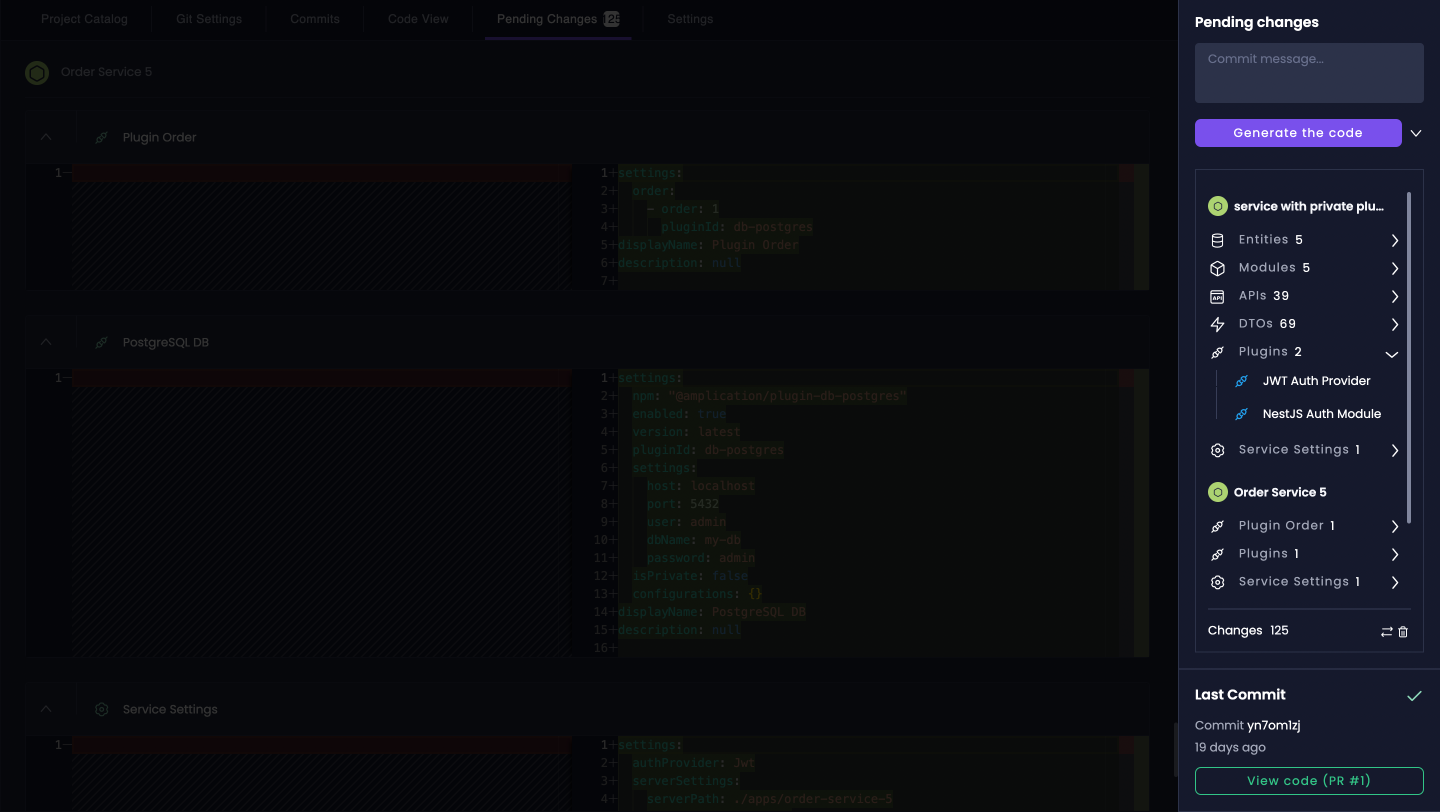 - Commit Message Management: Enter custom commit messages or let Amplication auto-generate descriptive messages for your code generation commits.