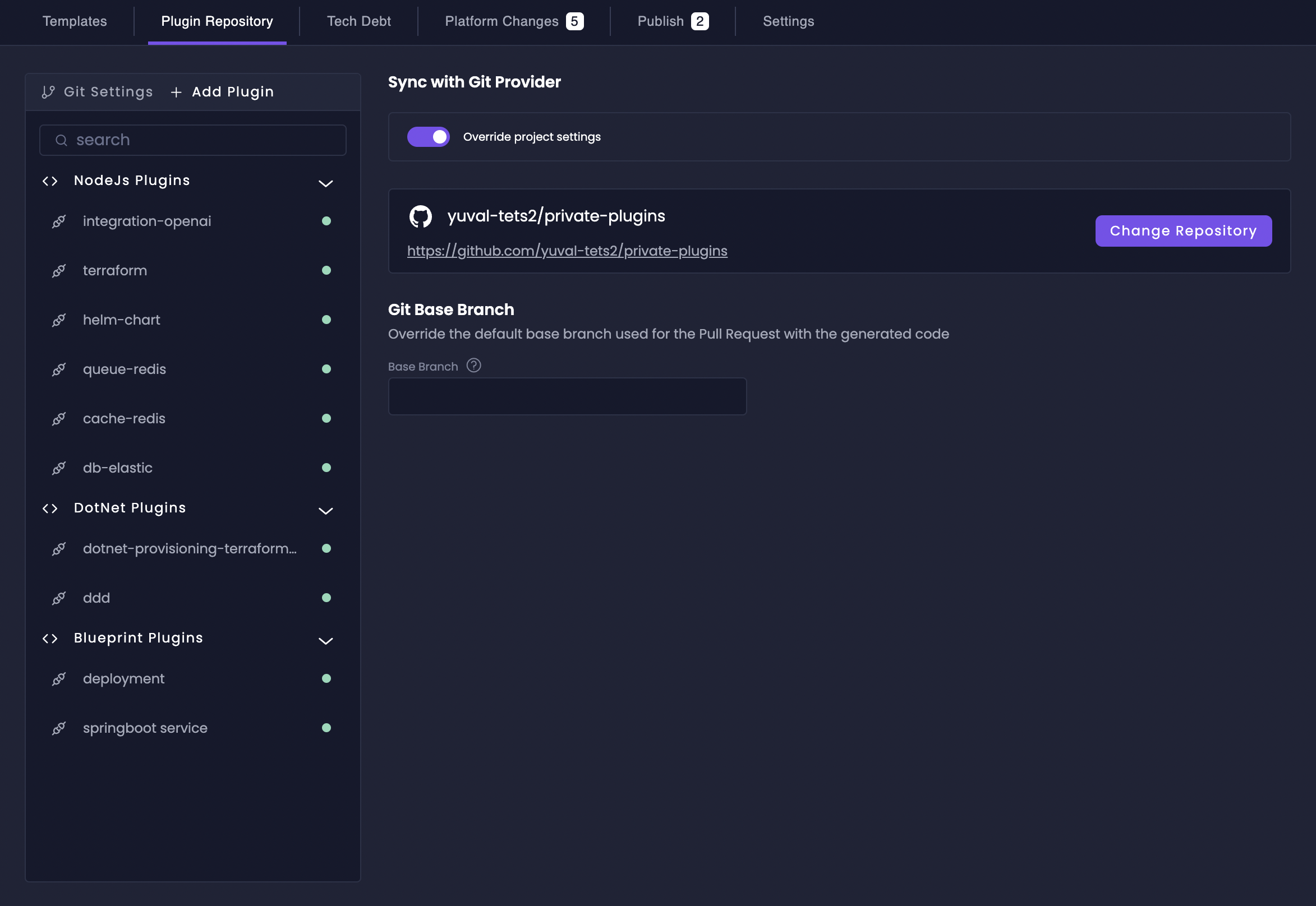 Navigate to your project and click on Plugin Repository in the Platform Console.