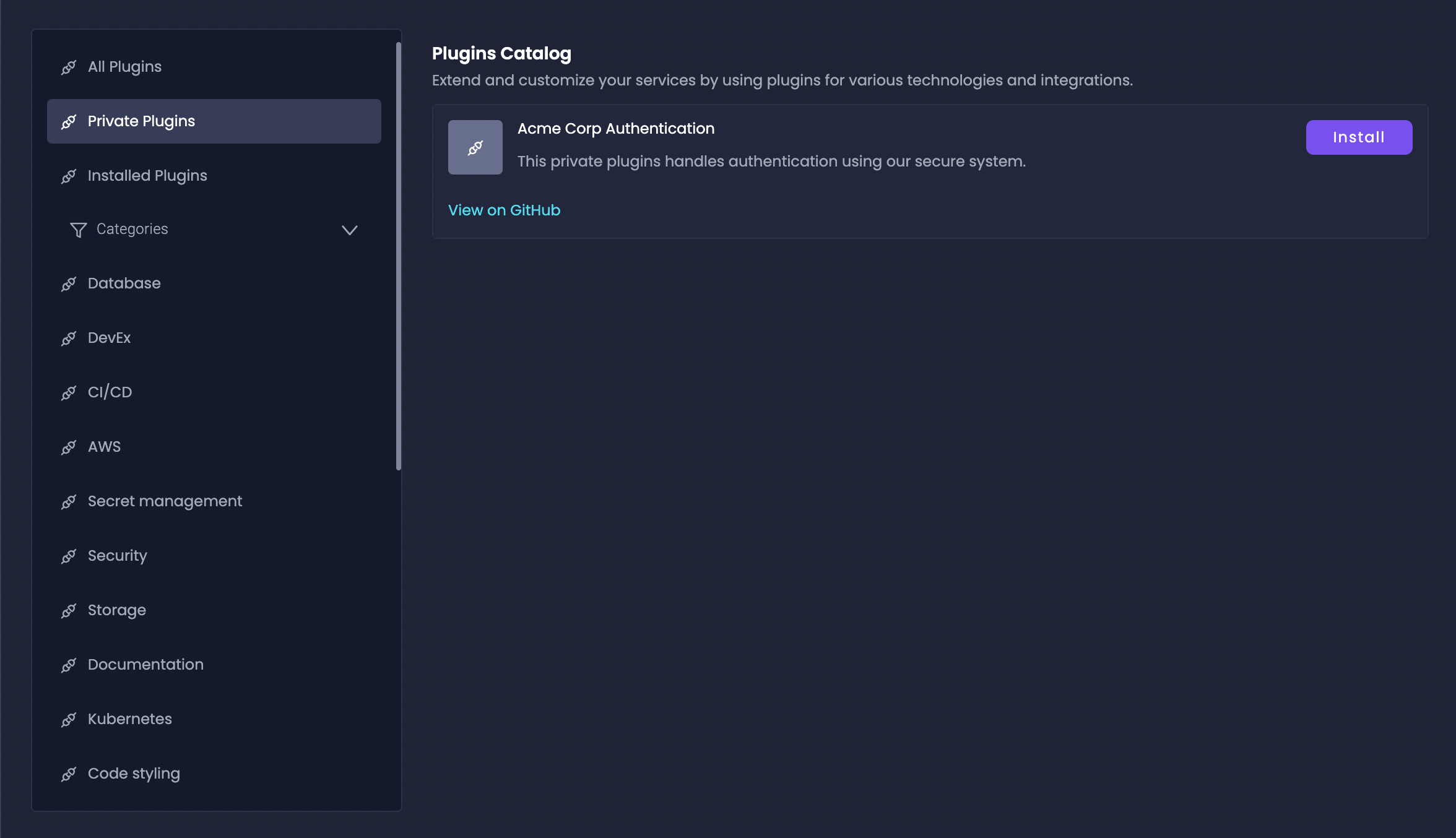 Next, you’ll add a new version entry for your plugin within the Amplication Platform Console. This version will correspond to a specific tag in your Git repository in the next step.Navigate to Private Plugins