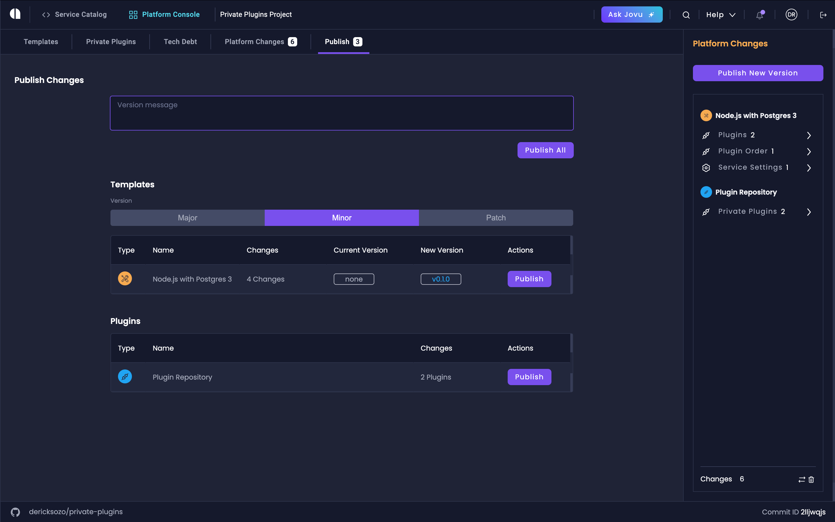 Finally, you need to publish the version through the Amplication Platform Console to make it officially available.Click 'Publish New Version'