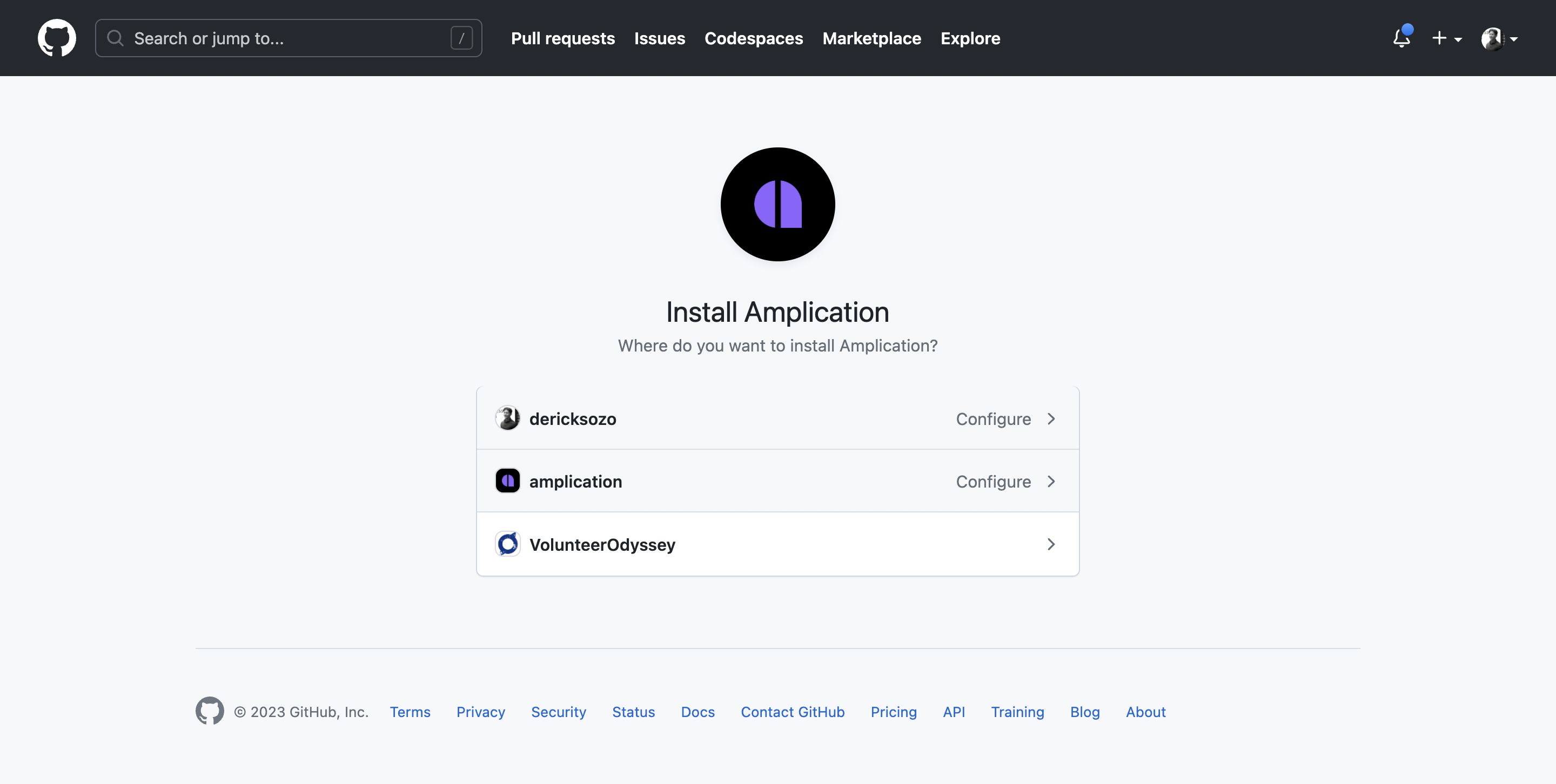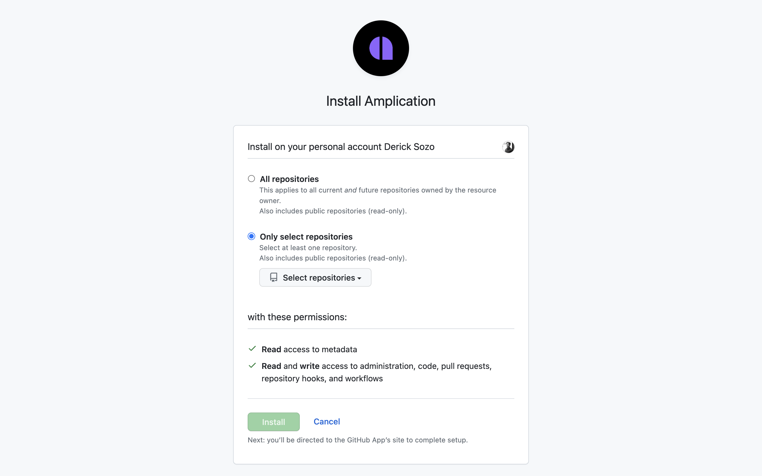 You’ll be redirected to GitHub to grant Amplication the necessary permissions for a specific organization or account.